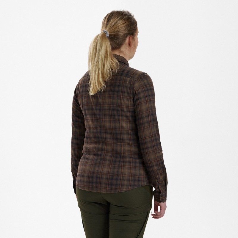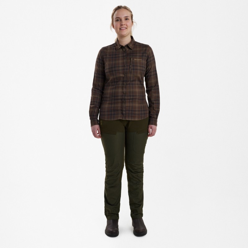 O interpretare contemporana a camasii clasice cu nasturi, camasa DEERHUNTER Lady Emery prezinta tesatura elastica caracteristica DEERHUNTER pentru un confort si o miscare sporita. Cu detalii de design moderne, cum ar fi un buzunar elegant pe piept cu fermoar si o croiala feminina, este un element esential in orice garderoba de exterior si poate fi purtata de la terenul de vanatoare la cabana de vanatoare si in orice alt loc intermediar.