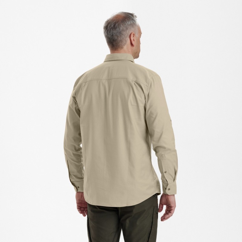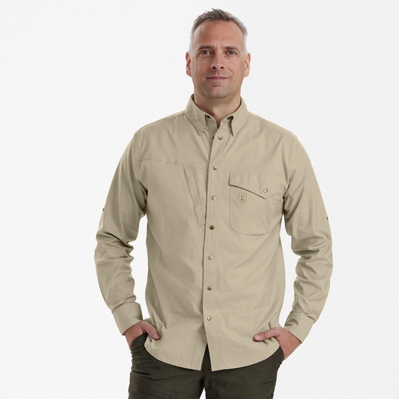 Aceasta camasa clasica din amestec de bumbac, cu poliester regenerat, dispune de materialul elastic bidirectional caracteristic DEERHUNTER, precum si de pliseuri la spate, pentru un confort sporit si libertate de miscare. Cu doua stiluri diferite de buzunare frontale sigure, un guler ascuns cu nasturi si curele pentru fixarea manecilor rulate, camasa DEERHUNTER Matobo este la fel de practica pe cat este de eleganta.