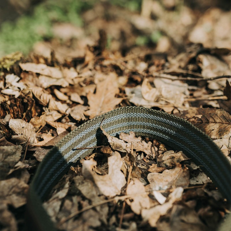 Cureaua este confecționată din piele bovină și accesorii metalice inoxidabile. Este căptușită cu chingă textilă în care este țesut cauciuc natural.