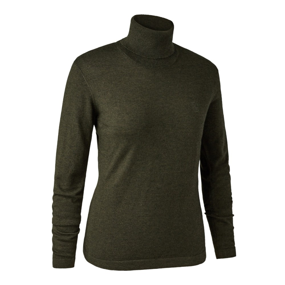 Pulover DEERHUNTER Lady Darlington cu guler inalt (Green Melange)