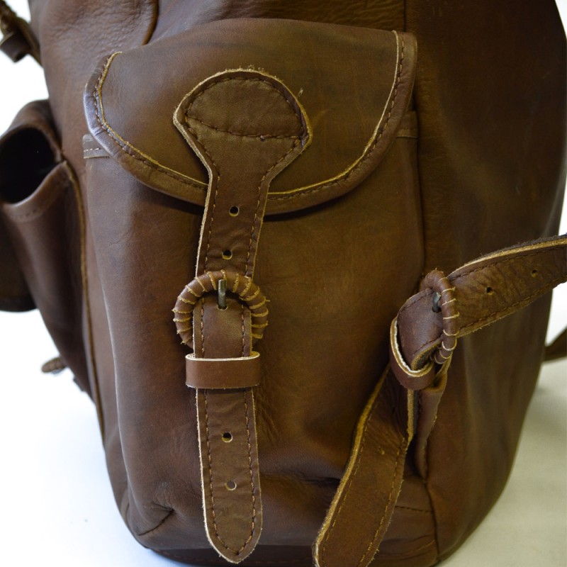 Rucsac ușor și practic, confecționat din piele bovină, impermeabilizată. Are încorporat un sac din material impermeabil care poate fi detașat ușor pentru spălare. Dimensiuni: 50 cm înălțime, 33 cm lățime, 13 cm adâncime.