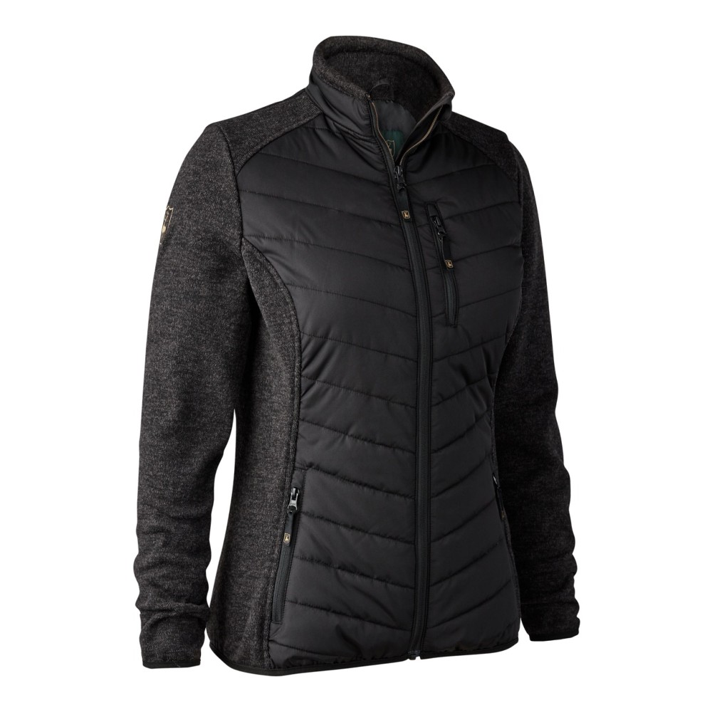 Indiferent de hobby-ul tau, geaca captusita DEERHUNTER Lady Caroline este ideala pentru toate tipurile de aventuri in aer liber. Aceasta geaca captusita, eleganta si practica, te va mentine calda datorita izolatiei suplimentare si confortabila datorita elasticitatii adaugate. Panourile laterale si de pe umeri din material tricotat ofera o potrivire feminina si complementara. Este completata cu doua buzunare frontale si un buzunar pe piept, toate cu fermoare ascunse. functionalitate acestui design elegant. In clasicul sau negru, geaca Lady Caroline cu umplutura va fi perfecta atat pentru plimbarea cu cainele, cat si pentru o intalnire la pranz.