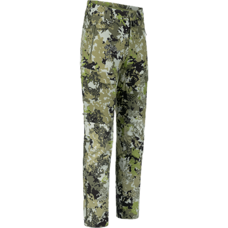 Pantalonii sunt realizati din doua tipuri de materiale extrem de durabile, rezistente la abraziune. Zonele din spate si zona genunchilor sunt confectionate dintr-o tesatura impermeabila in doua straturi, oferind protectie atunci cand ingenuncheati sau va asezati pe suprafete umede. Rezultatul este o pereche de pantaloni robusti, practici si perfect adaptati cerintelor vanatorii active in sezonul rece.