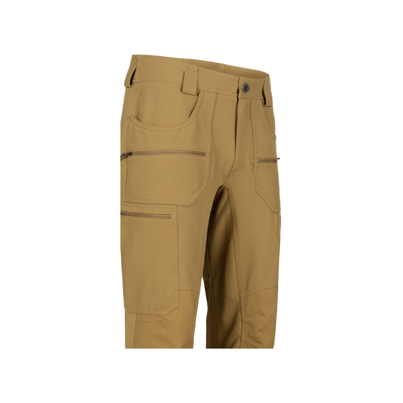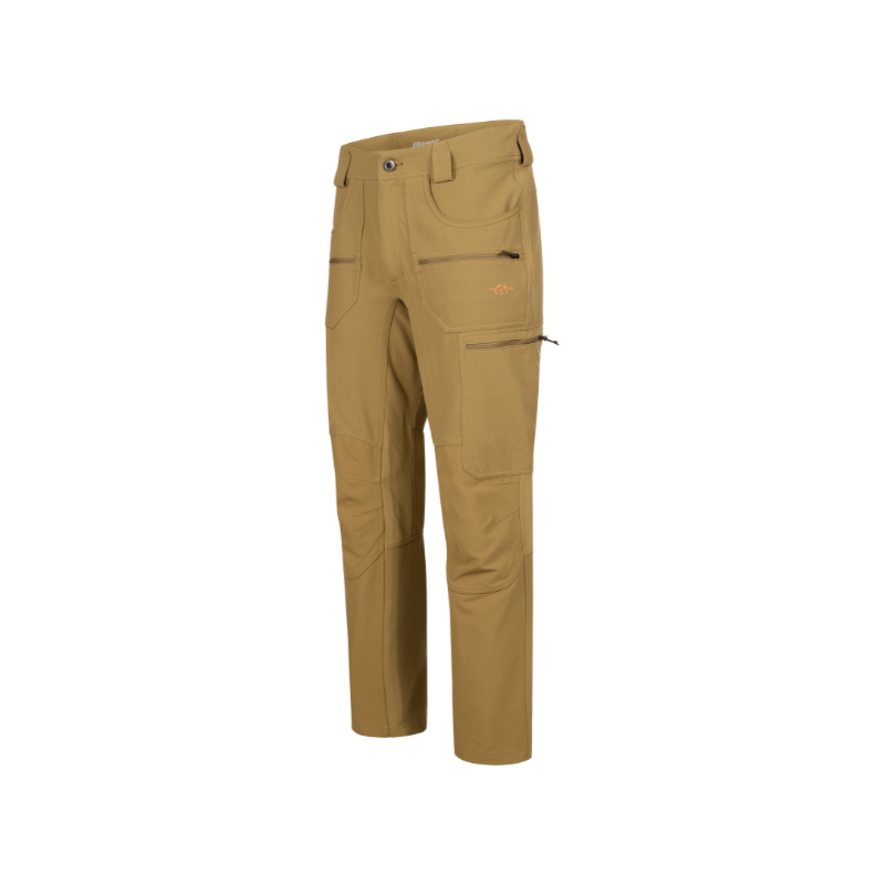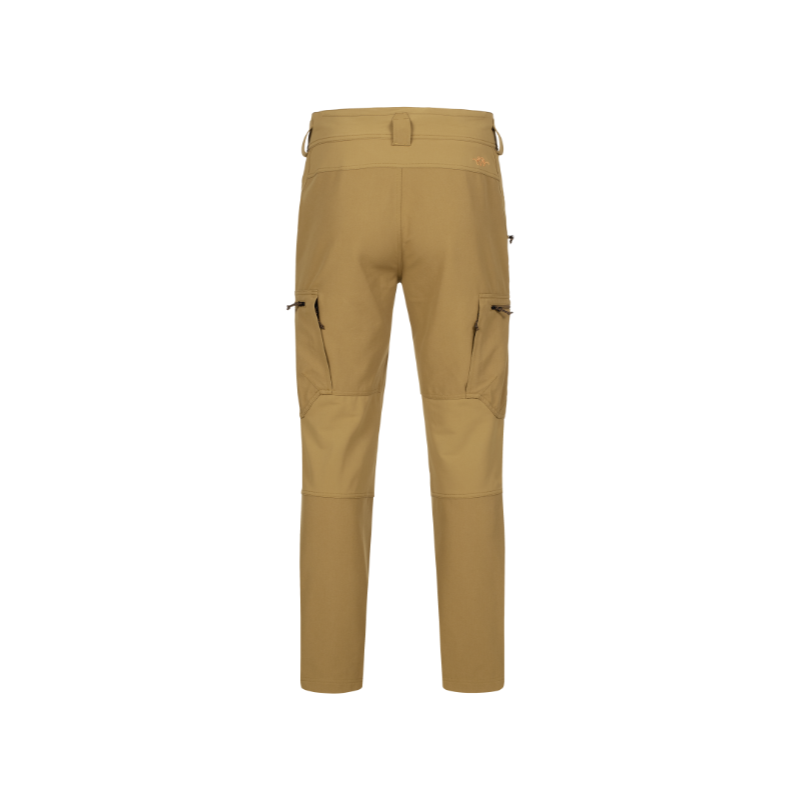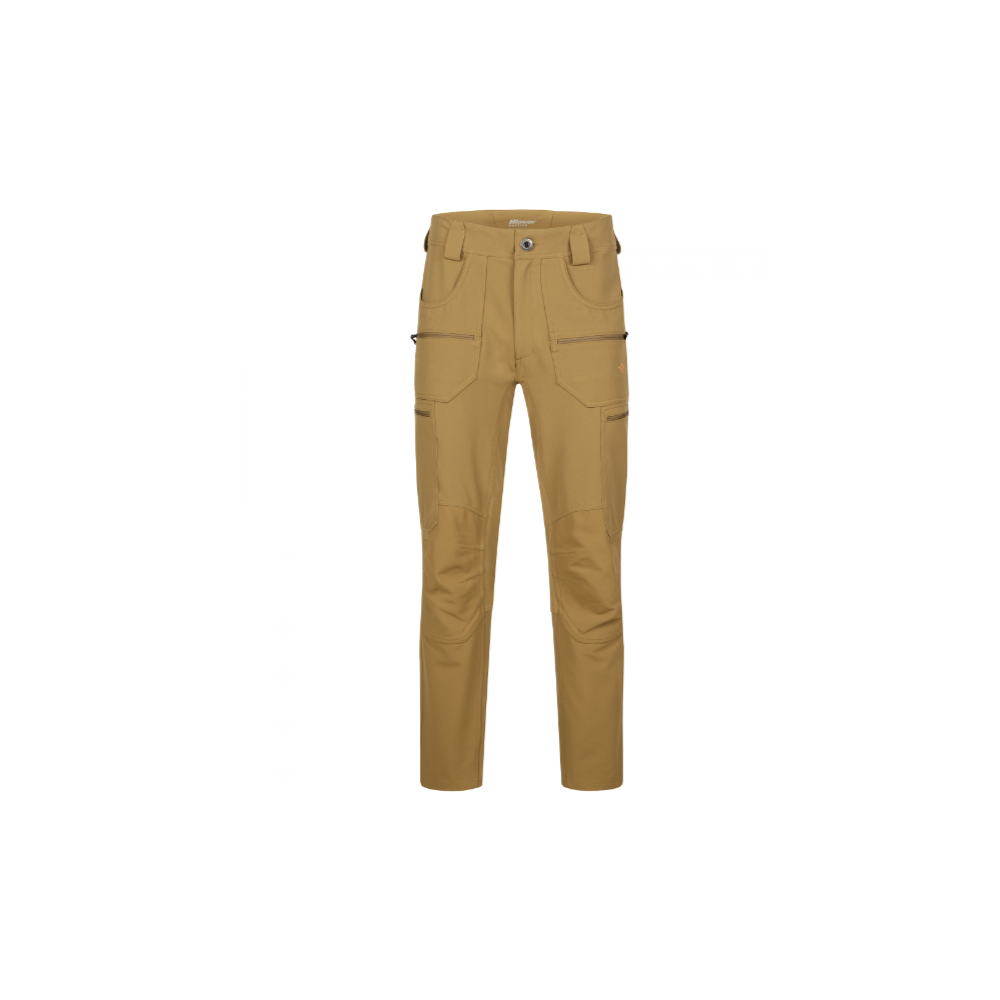 Material frontal cusut, rezistent la abraziune ridicata si durabil, realizat din Cordura, cu insertii elastice si intarire de la genunchi in jos. Include 2 buzunare superioare, 2 buzunare cu fermoar pentru munitie cu acces rapid si 2 buzunare inferioare pe picior, cu un buzunar interior din plasa pentru smartphone pe partea dreapta. Modelul dispune de clin pe genunchi pentru libertate de miscare.