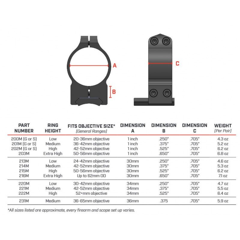 Inelele pentru lunetă Warne Maxima sunt proiectate pentru a se potrivi bazelor Warne, precum și tuturor bazelor Weaver și șinelor în stil Mil-Spec Picatinny.
