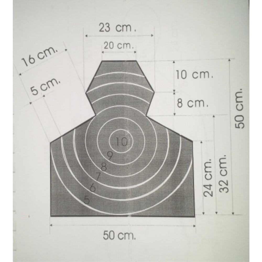 - ■ Tip țintă: țintă de tragere tip „piept cu cercuri nr. 4”